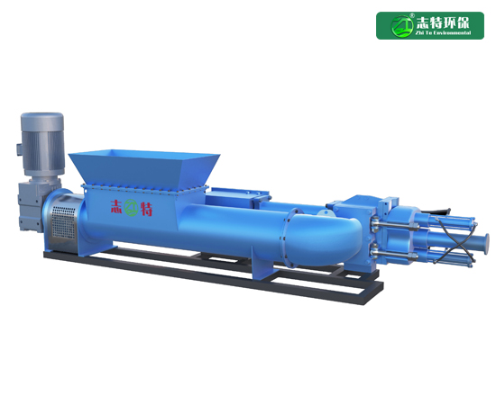 v 占地面積小,輸送量大,輸送效率高:該設(shè)備采用強制喂料螺旋作為該輸送泵的進料方式,可保證輸料泵缸體每次動作,輸料泵管道內(nèi)都有充足的餐廚垃圾等物料,相同設(shè)備體積下輸送量幾乎是單缸式餐廚垃圾輸料泵的兩倍,